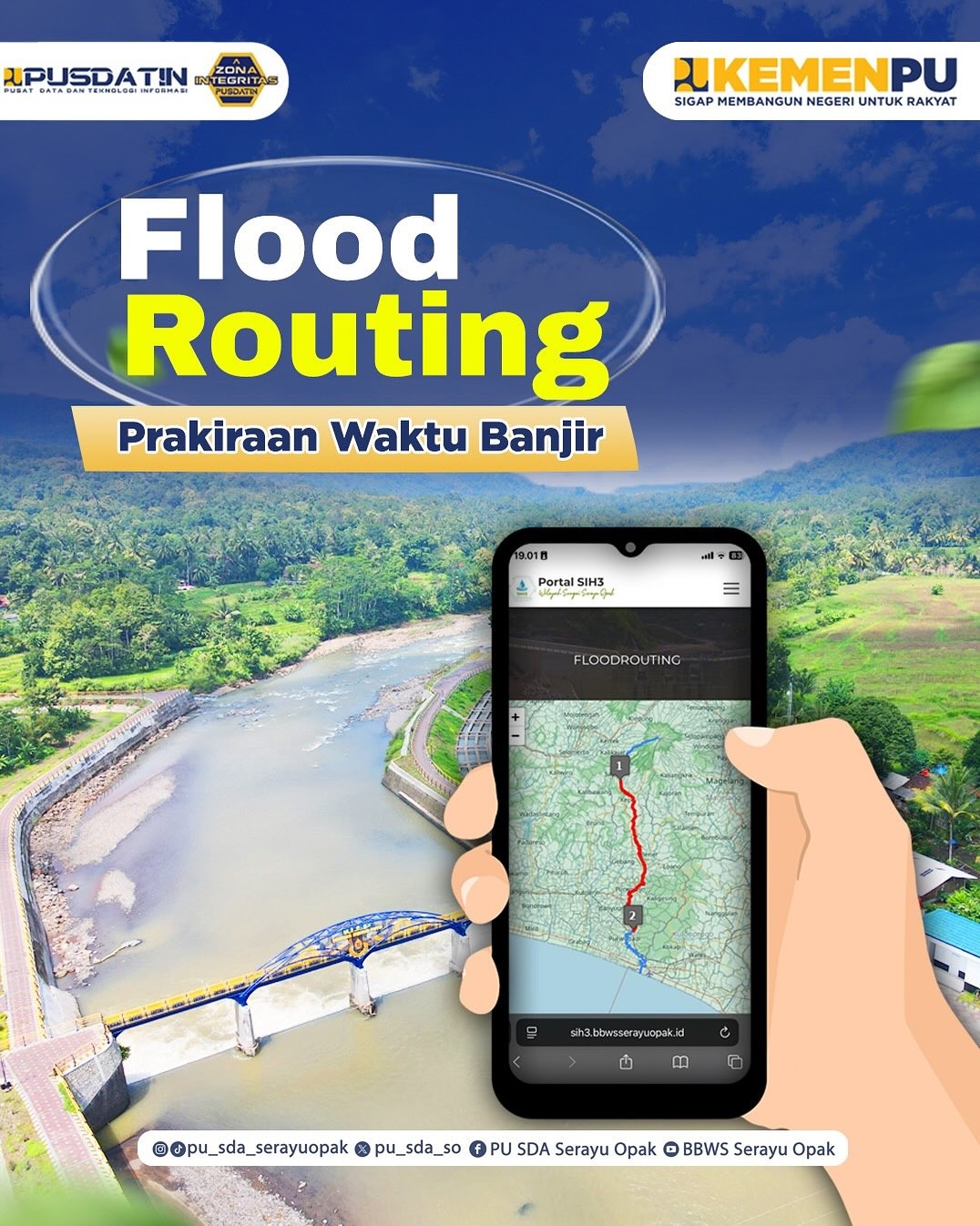 Berdasarkan informasi yang dikutip dari laman Pusdatin Kemen PU, Flood Routing adalah salah satu fitur pada website SIH3 yang dikembangkan oleh BBWS Serayu Opak untuk mendukung pengendalian daya rusak air, ketahanan infrastruktur dan keselamatan masyarakat.