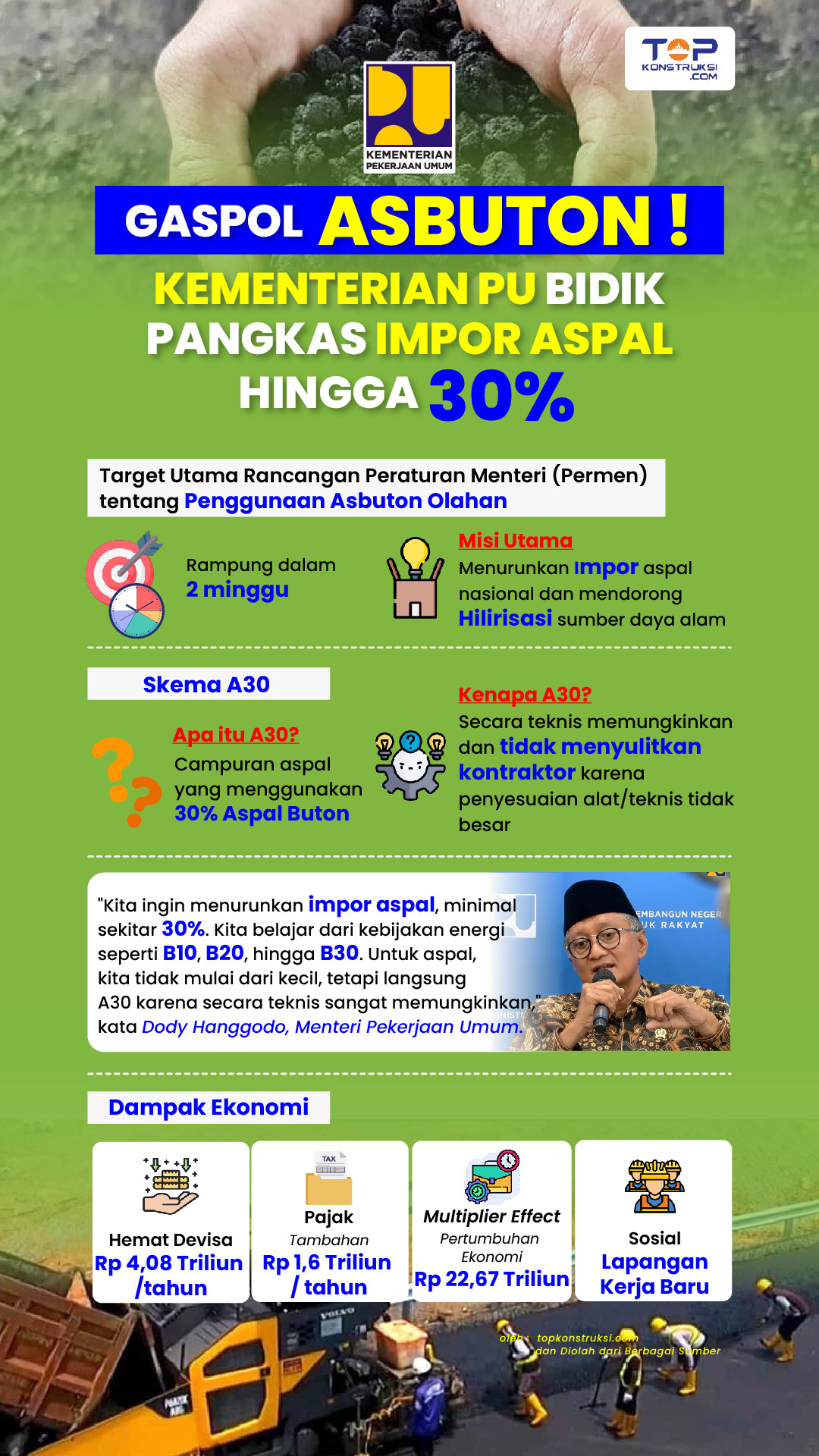 Menteri PU Dody Hanggodo menyampaikan bahwa dari sisi teknis, pemanfaatan Asbuton tidak menghadapi kendala signifikan.