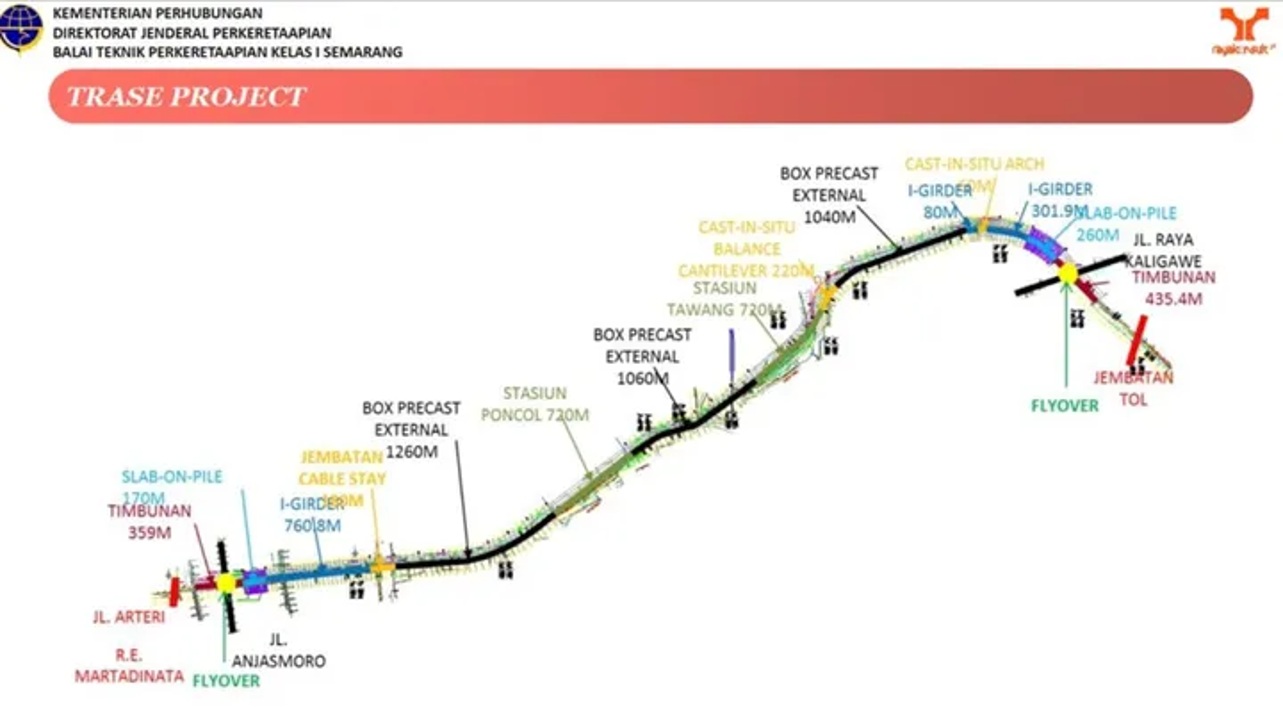 Akademisi Program Studi Teknik Sipil Universitas Katolik Soegijapranata Semarang sekaligus Dewan Penasihat Masyarakat Transportasi Indonesia (MTI), Djoko Setijowarno, mengungkapkan bahwa rel layang di Semarang dirancang membentang sepanjang 7,4 kilometer.