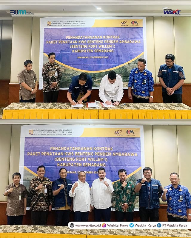 Penandatanganan kontrak proyek ini telah dilaksanakan oleh SVP Building Division Waskita Karya Paulus Budi Kartiko dan Bina Penataan Bangunan Satker Pelaksanaan Prasarana Permukiman Wilayah II Provinsi Jawa Tengah Tommy Faizal Wahyono pada tanggal 22 Desember 2023.