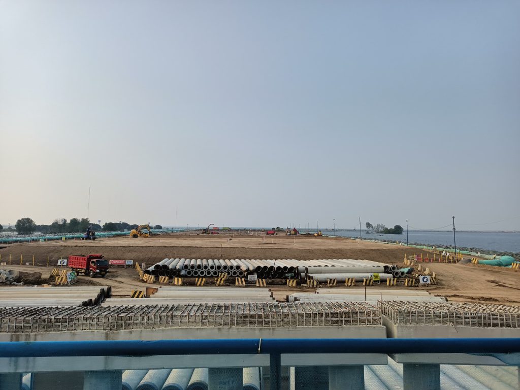 Ketinggian elevasi kini telah mencapai +5 meter di atas permukaan laut dengan total timbunan hampir 10 meter di sejumlah titik lokasi.