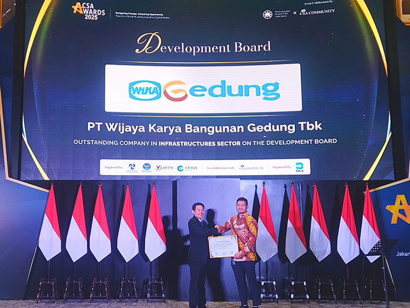 PT Wijaya Karya Bangunan Gedung Tbk (WEGE) kembali mencatatkan prestasi gemilang dengan meraih CSA Award for Outstanding Company in the Infrastructure Sector pada acara CSA Awards 2025.